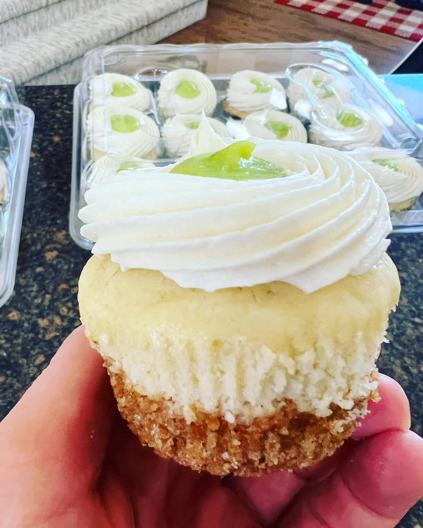 A) KEY LIME PIE: Graham cracker crust, lime cupcake topped with vanilla buttercream and lime curd.